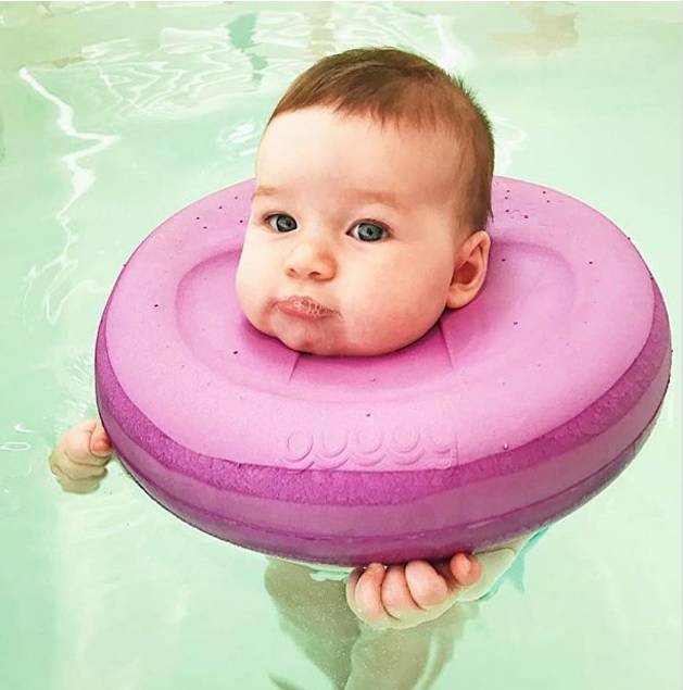 Come potrete notare dalle immagini ogni bambino indossa un salvagente per galleggiare chiamato Bubby che “sostiene i bambini in acqua permettendo loro libertà di movimento che altrimenti non potrebbero sperimentare”.