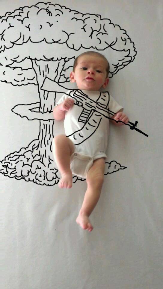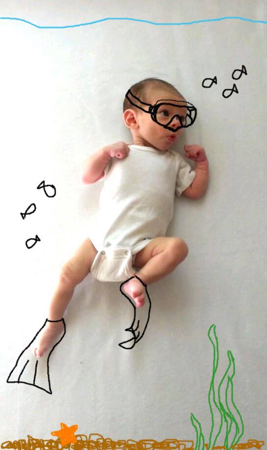 Ispirata dall’arrivo del suo piccolo e chiedendosi, come molte neomamme, come sarà questo nuovo piccolo esserino, cosa gli piacerà, come vestirà, cosa sognerà di diventare da grande, la Wheeler ha creato un una serie di buffissime e poetiche immagini fotoritoccate.