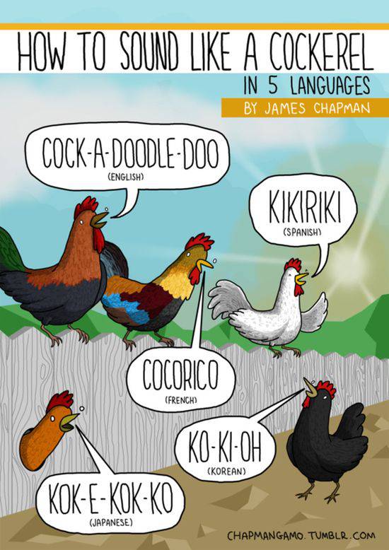 Sembra quasi che anche gli animali abbiano un linguaggio loro (e in parte è vero), che come quello umano viene diversificato nei differenti paesi di appartenenza.