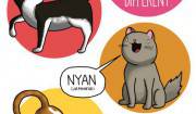 Nelle sue divertenti vignette, ad esempio, vediamo cani di paesi diversi a confronto: