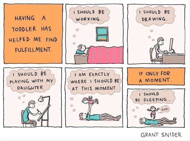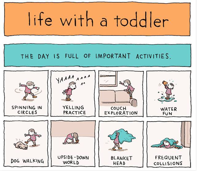 La vita con un bimbo di 2 anni cambia, eccome! Vi avevamo già parlato di quel genio di Grant Snider, un artista del fumetto che riesce a catturare con la propria matita tutta la magia della vita. Una delle protagoniste delle sue tavole è la figlia di cui immortala i progressi di crescita.