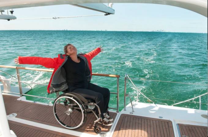 Deborah Mellen (paraplegica): “mi sono innamorata della vela. L’acqua è un elemento che mi ha offerto la libertà che non riuscivo più a trovare. Tuttavia sogno di navigare più in grande”.