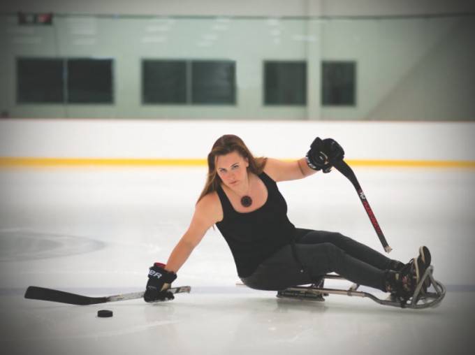Sarah Tabor (paraplegica): “ho provato l’hockey da slitta per anni, anche se è difficile. Me ne sono innamorata immediatamente e continuo a scoprire cose divertenti”.