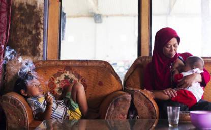 L’economia indonesiana dipende dal tabacco, una buona parte della popolazione vive della coltivazione e molti bambini sono crescono a contatto con fumo e sigarette. Inoltre non esiste una regolamentazione ad hoc, proprio perchè al governo sembra interessare di piu’ il ritorno economico che la salute degli Indonesiani.