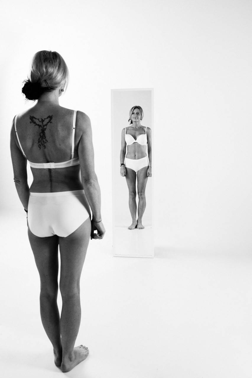 Per il servizio fotografico, 12 donne sono state invitate ad indossare solo intimo davanti ad uno specchio che le riflette per intero.