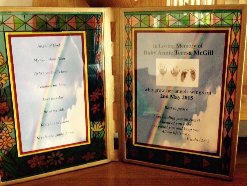 Il 2 maggio alle 12 e 30 è nata Annie, una bambina, e i genitori sono riusciti a stare con la figlia fino a che, come hanno raccontato loro, “le sono cresciute le ali da Angelo” alle 14 e 15. In queste poche ore sono riusciti anche a raccogliere ricordi della propria figlia, come le impronte delle mani e dei piedini.