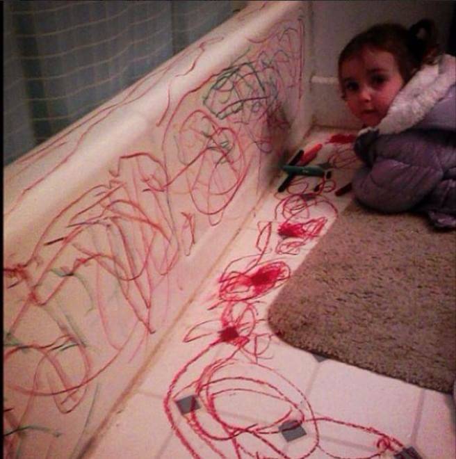 9- Bambini che usano il bagno come fosse un foglio per disegnare