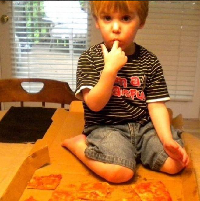 10- Bambini che amano mangiare la pizza…sul tavolo