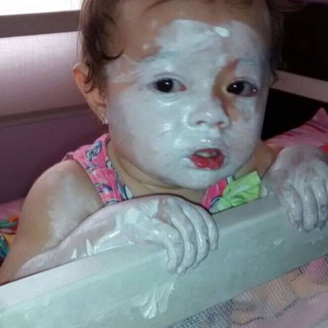 16- Bambini che imitano le mamme che si fanno le maschere al viso…però con la colla