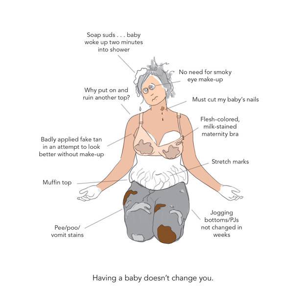 Nel suo nuovo libro: Doodle Diary of a New mom Lucy Scott cattura ogni glorioso momento degli sputi e del dolore al seno in una serie di illustrazioni a 3 colori per niente dispiaciute.