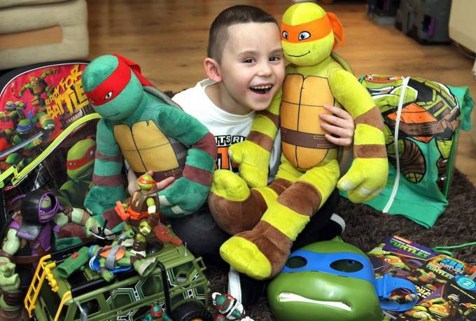 La sua storia aveva fatto il giro del mondo e per Natale il piccolo aveva ricevuto pupazzi e giochi delle tartarughe ninja da ogni parte del globo.