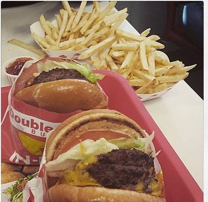 Il giorno prima di partorire la modella ha infine postato una foto di un doppio hamburger con patatine fritte (quindi decisamente non una scelta “salutista”), con sotto la scritta: “voglie”.
