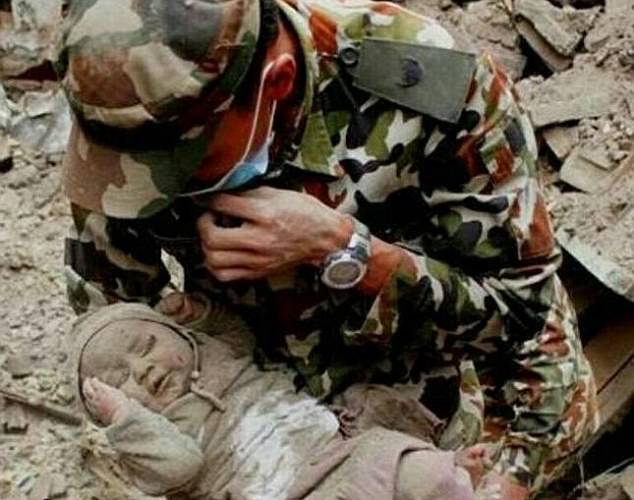 I militari avevano setacciato la zona alla ricerca di sopravvissuti e stavano per andarsene quando hanno sentito il piccolino piangere disperato.