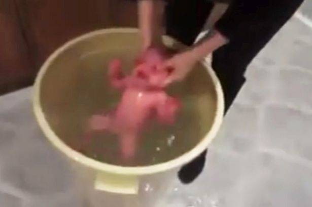 Ma veniamo ai fatti: circa una settimana fa su Facebook è stato diffuso un filmato in cui si vede una persona tenere per le braccia un bambino nudo, fargli fare dei movimenti repentini e immergerlo in un secchio d’acqua. Il tutto mentre il bambino si disperava.