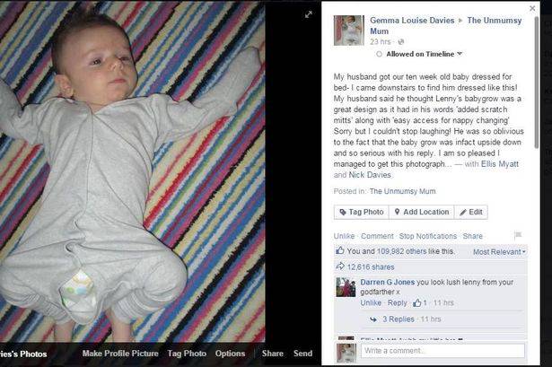 La mamma del piccolo Lenny, a corredo dell’immagine postata sul social network, ha scritto: “mio marito ha preparato per andare a dormire il nostro piccolo di 10 settimane, io sono scesa e l’ho trovato così…”.