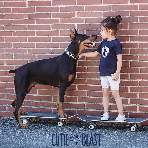 A qualcuno potrà sembrare che la compagnia di Buddha, un bel doberman di 2 anni, sia un po’ inusuale per una bimba, ma Buddha è un cane davvero adorabile e molto premuroso.