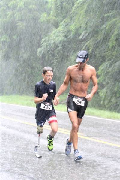 Si tratta di un’immagine scattata in occasione di una gara di triathlon svoltasi quando Ben aveva 12 anni. In essa si vede il ragazzo senza una gamba correre insieme al padre sotto la pioggia.