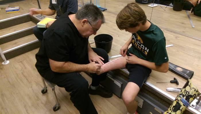 Il ragazzino trova il tempo per andare a trovare i pazienti che sono stati amputati da poco e li aiuta a venire a patti con una condizione destinata a cambiare le loro vite.