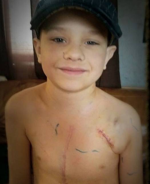 Il bimbo però era molto preoccupato di come sarebbe sembrato il suo petto, solcato da cicatrici. Così il suo papà ha pensato di postare la sua foto su Facebook affinché i suoi amici potessero sollevargli il morale.