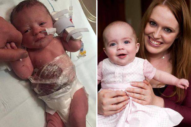 La piccina aveva solo 12 settimane quando, durante un’ecografia, sua mamma Zoe ha scoperto che soffriva di una malattia rara, la gastroschisi, ovvero aveva un buco nella parete addominale e quindi il suo intestino stava crescendo fuori dal corpo. La piccina è nata prematura alla 37° settimana.