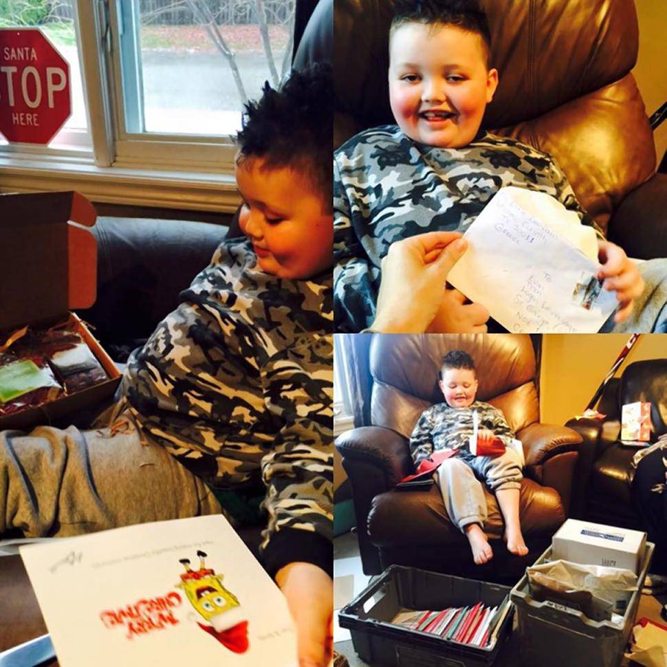 “Credeva davvero fosse Natale” ha raccontato la mamma che ha poi fotografato il figlio che riposava dopo l’intensa giornata “lui è sbalordito”.