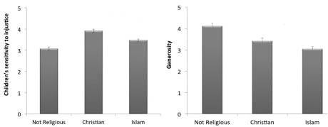 Una ricerca condotta su 1170 bambini, di sei nazioni diverse, ha evidenziato come i bambini appartenenti a famiglie religiose siano meno altruisti dei coetanei appartenenti a famiglie agnostiche o atee.