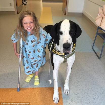 Si tratta di un caso che si verifica una volta ogni 200 mila nascite. Così per 9 anni, a Bella Burton è stato impossibile camminare senza grucce o muoversi senza la carrozzina, almeno finché non ha incontrato George, un enorme danese che le consente di muoversi liberamente.
