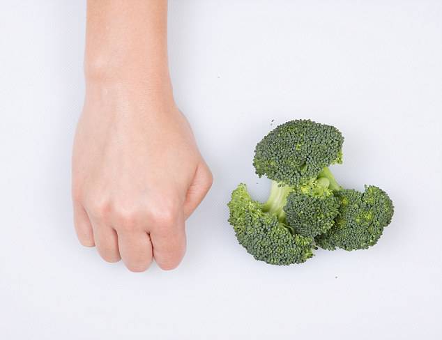 Per contarne come uno dei vostri 5 al giorno (80 gr) una porzione di verdura deve essere delle dimensioni del pugno chiuso. Due volte questa quantità di broccoli dovrebbe contare come 2 di 5 al giorno, nonostante la varietà sia una chiave, lo scopo è di avere una quantità arcobaleno di verdura colorata.