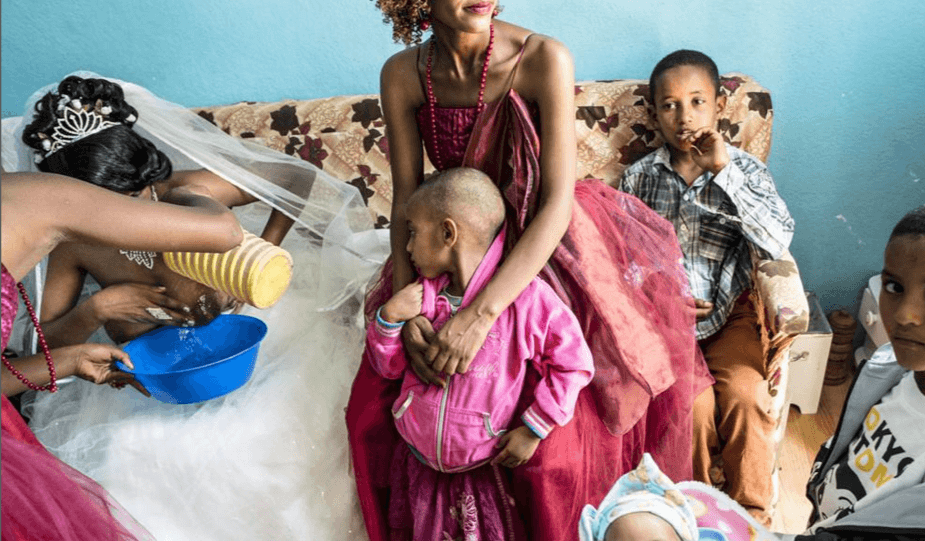 Etiopia: periferia di Azum: una sposa della Chiesa Ortodossa di Tewahedo si fa lavare il seno prima di allattare il figlio di pochi mesi.
