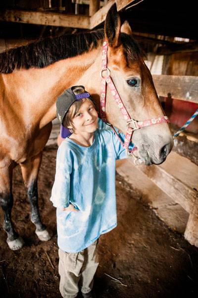 Eli e il cavallo Lucy, dall’America. Eli ha l’anemia di Fanconi, una malattia rara di cui si registrano 1000 casi in tutto il mondo.