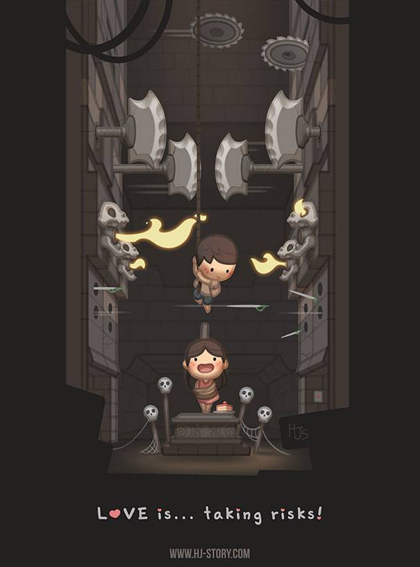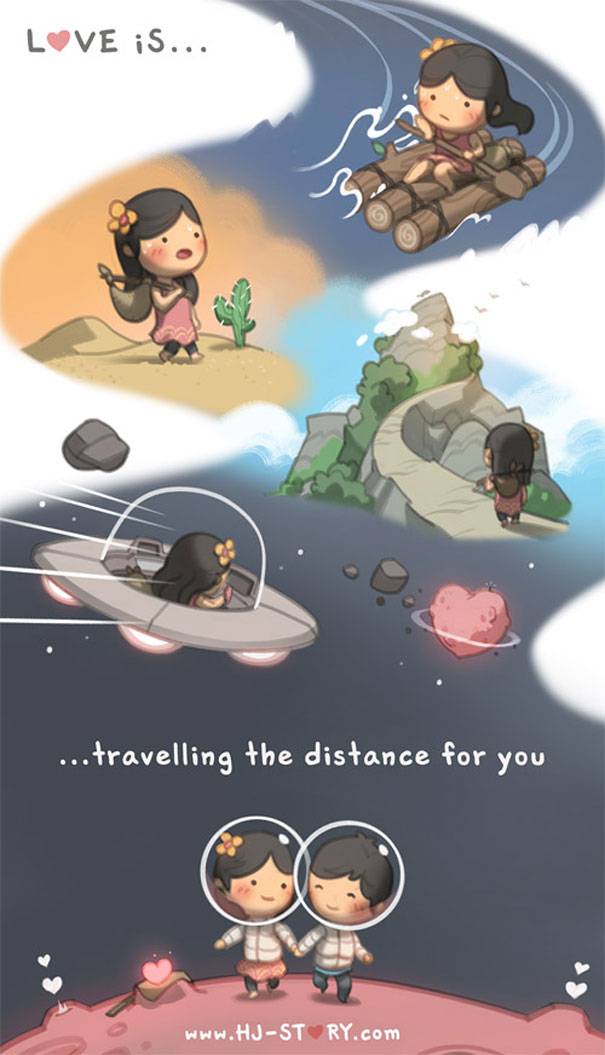 Ricorderete tutte i disegni intitolati “L’amore è…” di Kim Casali usciti per la prima volta negli anni 60 e poi divenuti famosi in tutto il mondo, e da questi ha preso ispirazione Andrew Hou, un artista di origine asiatica.