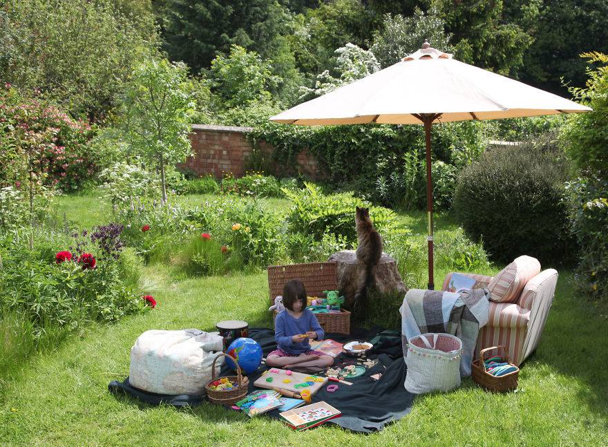 Lei è più reattiva, calma e accomodante quando la mamma allestisce “la sala da giochi” in giardino o da qualche parte in campagna.