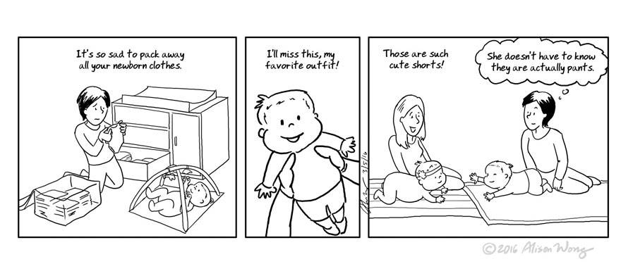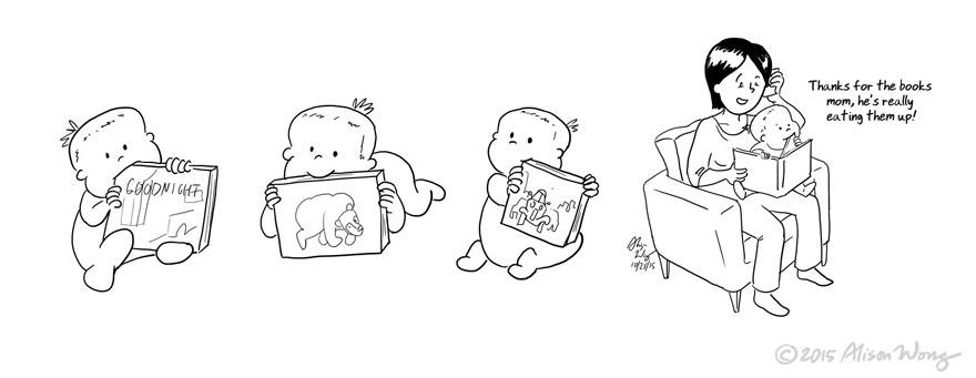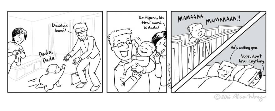 E’ il caso di una mamma disegnatrice, Alison Wong. Alison è ben consapevole che essere una mamma non sia esattamente “una passeggiata”. Si trascorrono giornate intere coperte da cibo per bambini, fluidi del corpo e altre sostanze a caso che non verranno pulite dalla lavatrice. Questa disegnatrice però non perde il buonumore davanti alle “avversità” della maternità e riesce a conferire a tutte le sue esperienze un tocco di velata ironia.