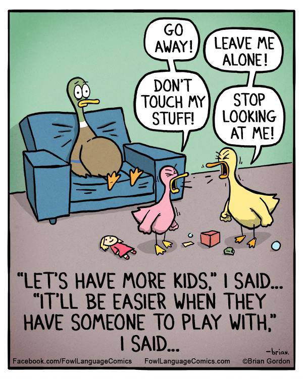 “Facciamo più bambini” ho detto…“sarà più semplice avendo qualcuno con cui giocare” ho detto.