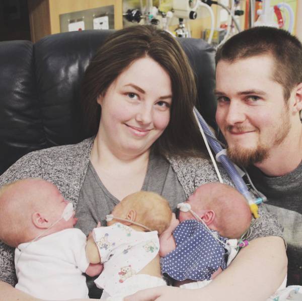 La mamma in questione, Chloe Dastnan, che aggiorna un delizioso blog fotografico intitolato Chloeandbeans, assieme al marito, ha deciso di tenere tutti e 3 i bambini. I piccini sono venuti alla luce a 28 settimane e, fortunatamente, è andato tutto bene.