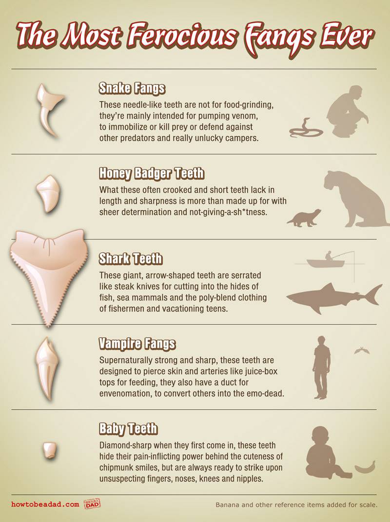 Possiamo poi dimenticare i loro denti da latte? Suppellettili temporanee, destinate a cadere e a venire rimpiazzate da altri, ma non per questo meno resistenti e letali. Tutti i genitori attendono con paura il momento della crescita dei primi dentini, convinti che la parte più dura sia la fase intermedia dentro/fuori. In quei giorni, infatti, il tenero angioletto è nervoso, ha la febbre, il sederino rosso e le gengive gonfie, situazione che comporta attacchi a sorpresa totalmente ingiustificati per mezzo delle loro unghie, tanto per cambiare. Genitori inesperti possono pensare che la fase più dura passa nel momento in cui l’agognato dentino riesce a venir fuori. In realtà, è da lì che tutto ha inizio.