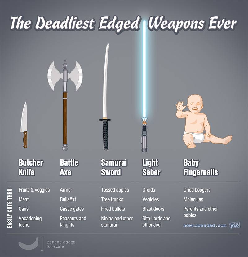 Inoltre so per certo che non sono l’unico a pensarlo: due papà americani che hanno un blog molto simpatico, How to be a dad, hanno addirittura realizzato dei poster sulle armi improprie dei bambini.