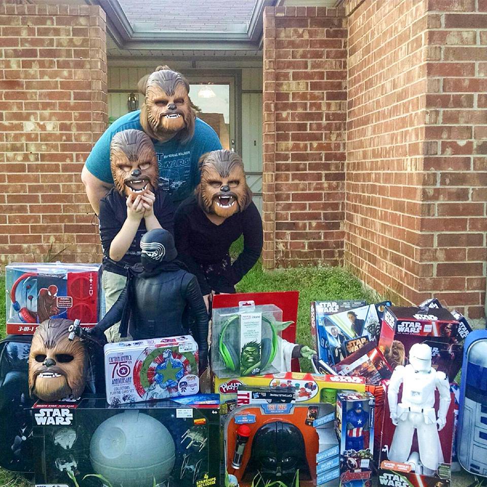 Alla signora Payne, oltre alle maschere per i figli e il marito, sono state regalate gift cards da 2.500 dollari, 10 mila punti di ricompensa nel negozio e una serie di giochi di Star Wars per tutta la famiglia.