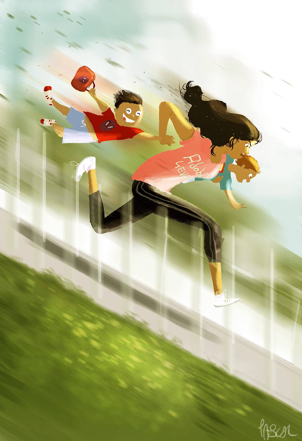 A volte, il disegno racconta esattamente quello che è successo. Qualche anno fa ho realizzato una illustrazione con me e i miei due figli che coloravamo con i pennarelli, perché era effettivamente accaduto.