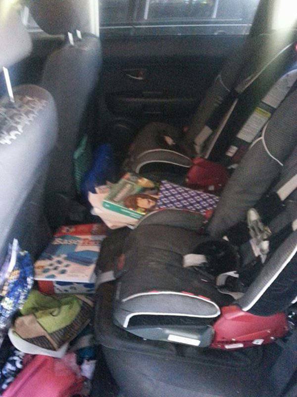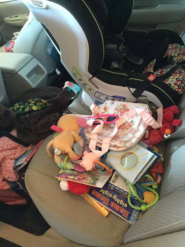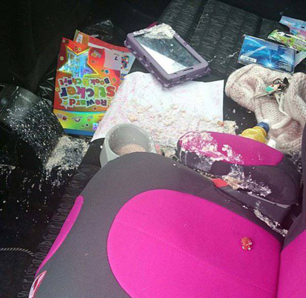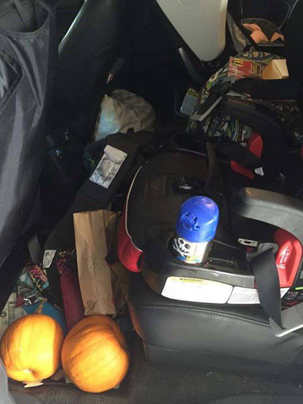 Sul sedile posteriore si accumulano giochi, cibi, ecc… in grande quantità e purtroppo non c’è mai il tempo di pulire.