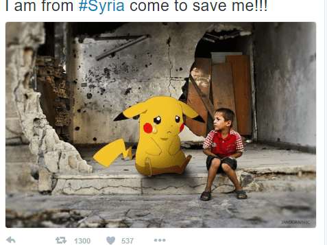 Con l’hashtag #PokemonInSiria i bambini siriani lanciano un appello pubblicato sotto le loro immagini: “trovateci e venite a salvarci” o “salvate noi non i Pokemon”.