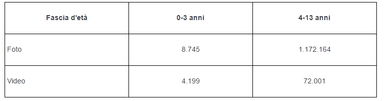 Nel 2015 Meter ha trovato innumerevoli foto di minori, eccoli divisi per fasce di età: