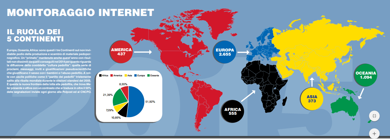 Il 2015 segna un triste primato nella lotta alla pedofilia. Il report 2015 dell’Associazione Meter di Don Fortunato di Noto segnala un’escalation di segnalazione legate alla pedofilia derivate dai social network: 3414 contro i 180 del 2014.