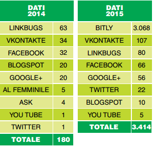 Vkontakte è in salita rispetto al 2011 (da 34 a 107 segnalazioni), Facebook passa da 32 a 66 e Google + da 22 a 56.