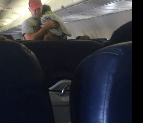 “Quest’uomo ha camminato per tutta la corsia per la maggior parte del volo da Minneapolis ad Atlanta confortando il figlio di questa donna come se fosse il suo… Io stavo piangendo, non perché lui era bianco e la donna nera ma perché mi ha mostrato che ci sono ancora persone buone là fuori in un mondo pieno di disordini. Grossi applausi per questo papà e tutti i papà là fuori”.
