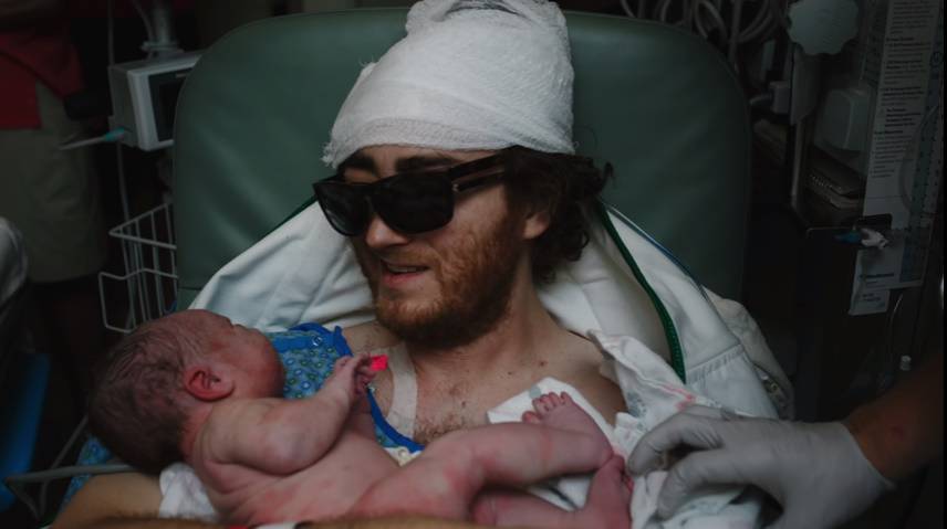 Quando la fidanzata di Craig, Jessica Li, è entrata in travaglio, il 18 settembre, le infermiere della terapia intensiva dell’ospedale hanno deciso di fare qualcosa di speciale per la coppia: Graig infatti è stato portato in sala parto con una sedia a rotelle e con tutti gli apparecchi necessari alla sua terapia, assistito da un’infermiera, con la testa fasciata e indossando un paio di occhiali da sole come protezione.