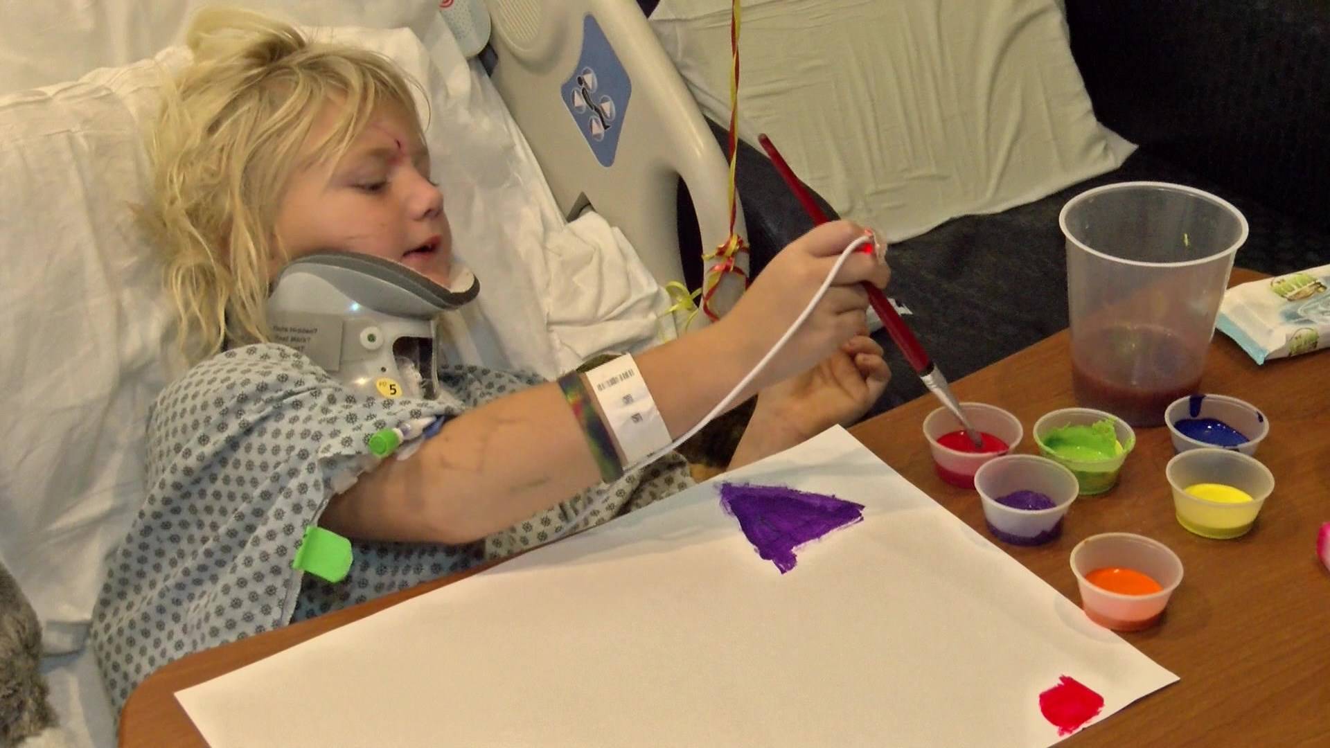 La bambina è ora a casa e deve tenere fasciato il ventre fino a completa guarigione.