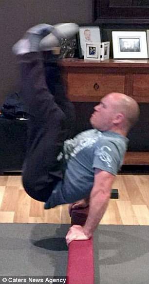 La sbarra, la trave e i salti mortali non hanno più misteri per lui che si esercita accanto alla figlioletta. Per riuscire a eseguire l’allenamento gli ci vogliono diversi tentativi, la maggior parte dei quali terminano con Mills che cade sulla schiena, ma solo in un’occasione ha rischiato di farsi veramente male.