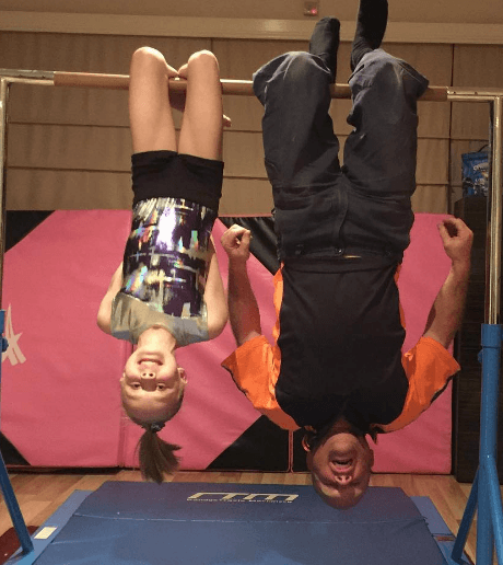 Mills è un papà che non si è accontentato di assistere agli allenamenti della figlia ginnasta e di accompagnarla alle gare, ma ha preso parte, in modo simpatico e deciso, al suo training.