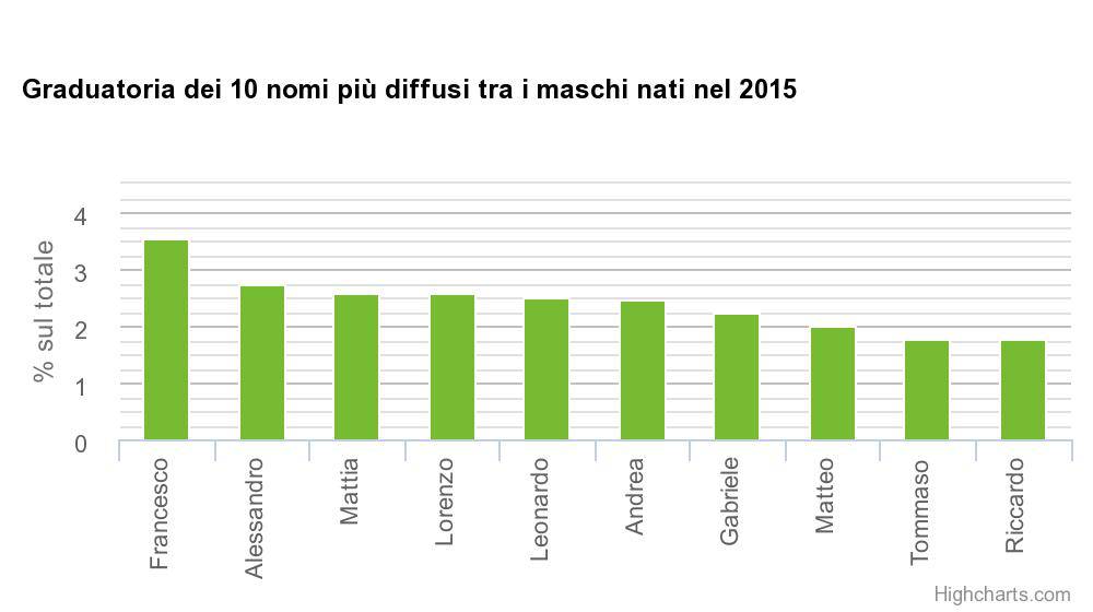 1-  Francesco: valore assoluto 8.763 e percentuale sul totale dei maschi 3,55%